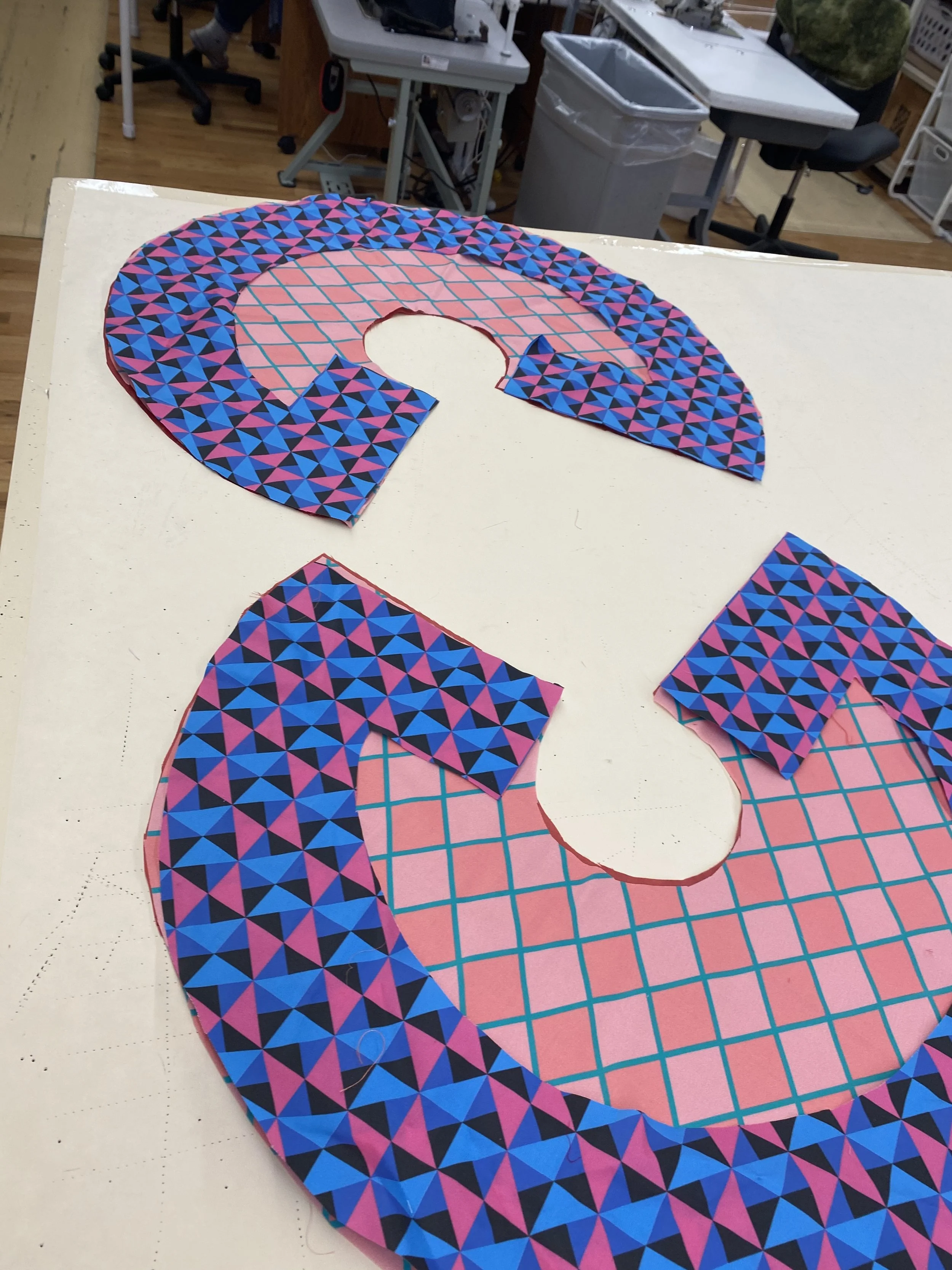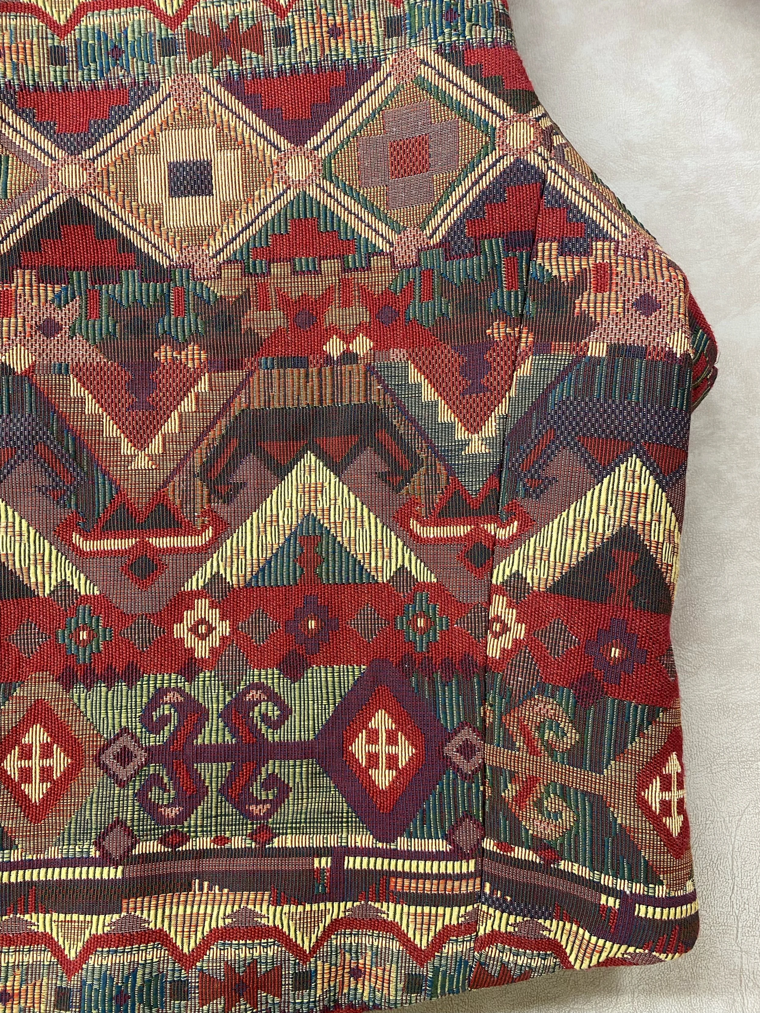 Strategically pattern-matched, fitted pair of vests with hook and bar closures